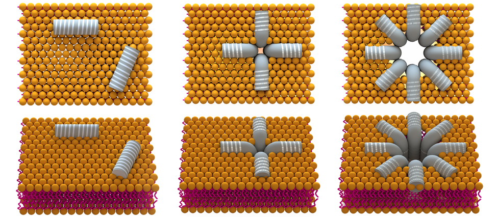 For instance, we are interested in the role of misfolded proteins in damaging the membranes of nerve cells. This damage is thought to contribute to neurodegenerative diseases like Alzheimer’s, Parkinson’s, and Prion disease. One challenge is that misfolded proteins aggregate and from particles in all sizes and shapes. This heterogeneity renders established analytical techniques inadequate for characterizing these samples. What is worse, the size and shape of these protein aggregates influence their propensity to damage membranes and to kill neurons – aggregates of intermediate size are more toxic than smaller and larger ones. We are developing single molecule tools for rapid characterization of protein aggregates in solution and, based on the ensuing insight, we are exploring the role of different aggregates on membrane damage and neurotoxicity, taking advantage of recent breakthroughs in electrical and optical characterization of the membrane potential of hundreds of living nerve cells in parallel.
